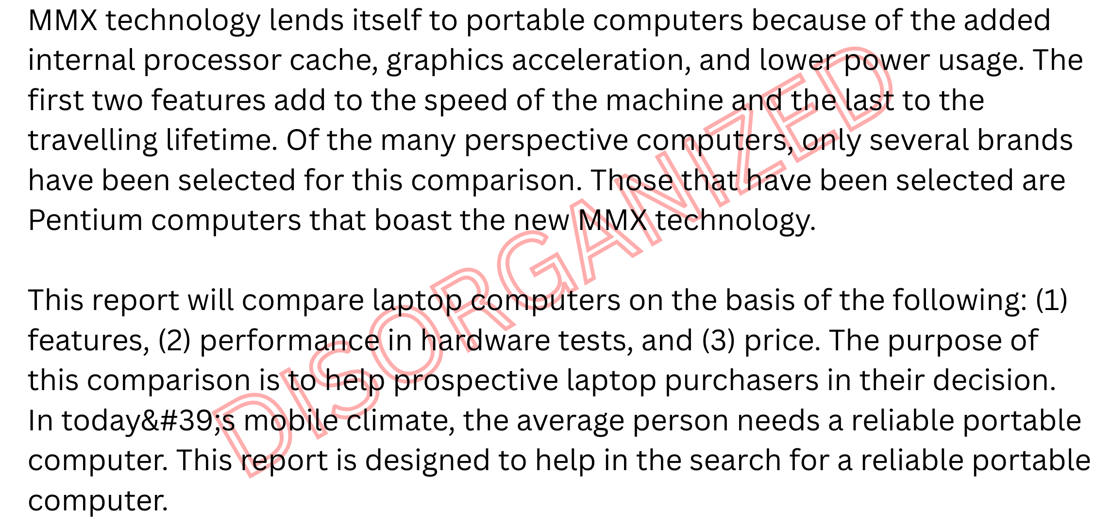 Disorganization in an introductory paragraph.