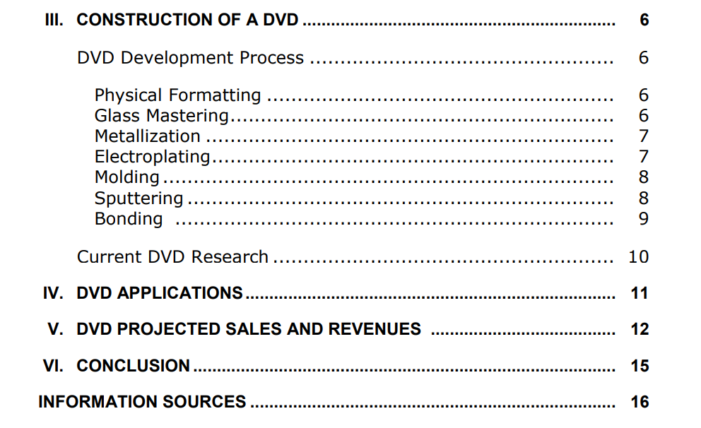 One final note: Make sure the words in the TOC are the same as they are in the text. As you write and revise, you might change some of the headings—don't forget to change the TOC accordingly. See the example of a table of contents: